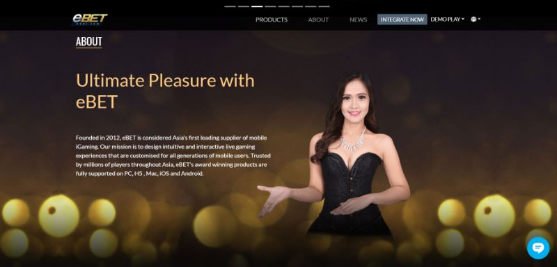 Cái tên eBet được ra đời vào năm 2012, khi mà thị trường game Casino online vẫn còn đang khá là mới. eBet được coi như là tiên phong trong lĩnh vực game di động đỏ đen ở châu Á. Nhiệm vụ của họ là thiết kế trải nghiệm chơi game Casino mobile trực quan và tương tác trực tiếp với người chơi thông qua kết nối internet, quan trọng là dễ hiểu để già trẻ ai cũng có thể chơi được.