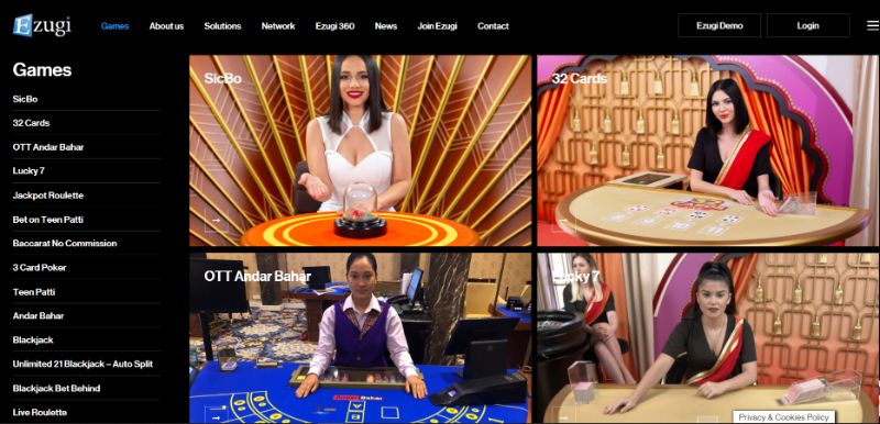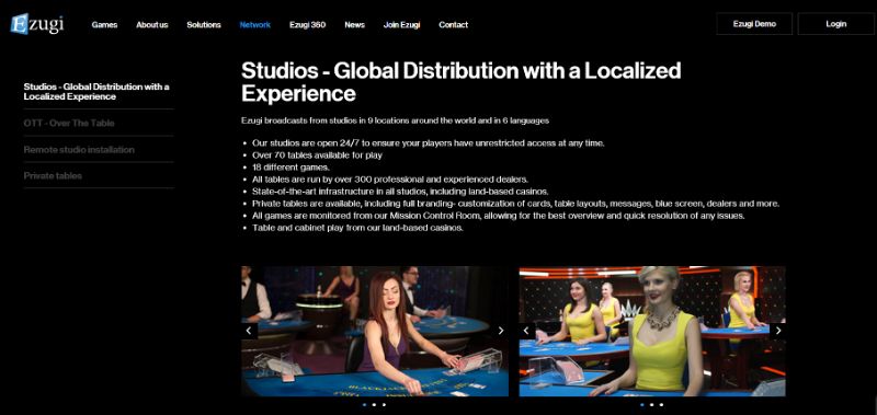Ezugi phân phối game Casino livestream tương tác trực tiếp từ các studio nằm tại 9 địa điểm trên thế giới với 6 ngôn ngữ khác nhau.