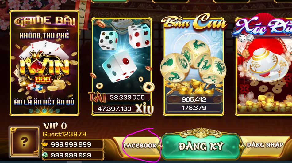Đăng ký iWIN Club thông qua Facebook