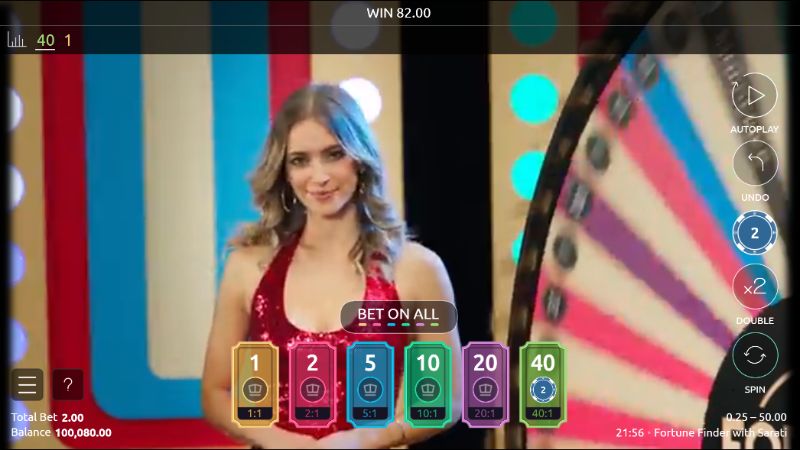 Người chơi sẽ đặt cược vào các con số như 1, 2, 5, 10, 20 và 40. Người dẫn chương trình xinh đẹp Sarati sẽ có nhiệm vụ điều khiển vòng quay và nói cho bạn kết quả. Đây là một trò chơi đỏ đen khá thú vị mà bạn có thể tham gia cả ngày, cũng bởi vì Sarati quá xinh đẹp đi.