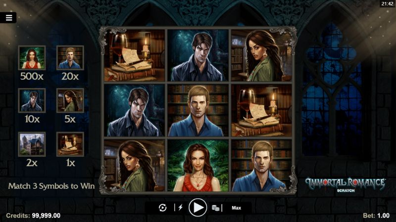 Trong game cào bài Immortal Romance Scratch, bảng kết quả sẽ có tổng cộng 9 ô. Nhiệm vụ của bạn là phải lật mở cả 9 ô này, nếu như có 3 biểu tượng giống nhau thì sẽ được ăn tiền thưởng tương ứng. Phần thưởng cao nhất trong game lên đến 500 lần mức cược.