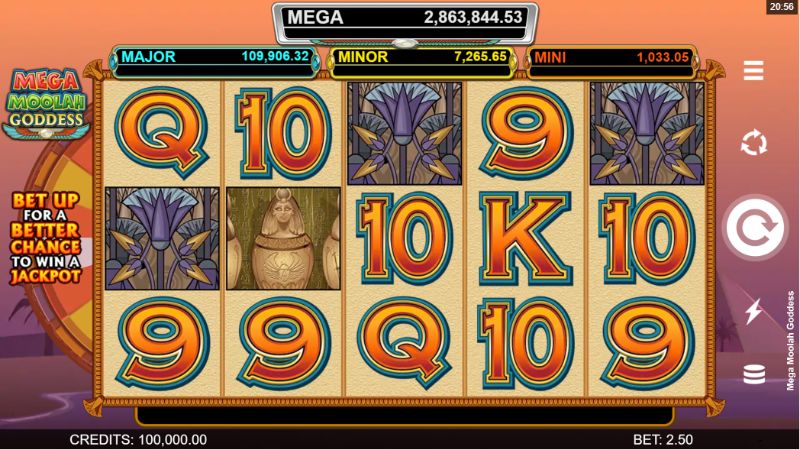 Trong game Mega Moolah Goddess, người chơi có cơ hội ăn được một trong 4 hũ tiền của trò chơi. Bảng kết quả trong game có hình dạng 3×5 (3 dòng 5 cột) với 25 dòng trả thưởng tất cả. Nếu may mắn bạn sẽ có cơ hội nhận được tới 30 lượt quay miễn phí với rất nhiều phần quà thú vị khác.