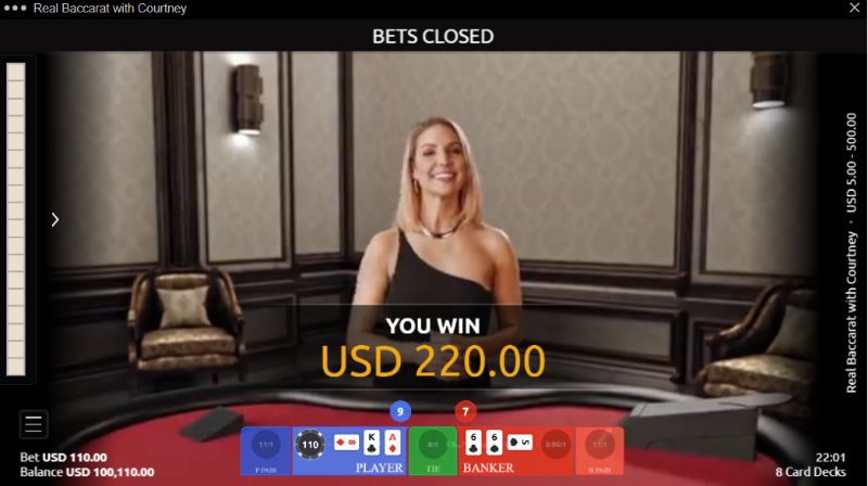 Trong game Baccarat này, người chơi và nhà cái sẽ được chia mỗi người 3 lá bài trong đó có 2 lá bài chính và 1 lá bài phụ. Luật chơi cũng giống như game Baccarat thông thường thôi, bài của ai cao hơn thì sẽ thắng. Nếu như bạn đặt cửa nhà cái thì khi thắng sẽ phải trả cho họ 5% phí hoa hồng. Người dẫn chương trình Courtney sẽ điều khiển trò chơi này.