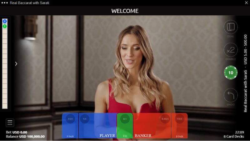 Trong game Baccarat này, người chơi và nhà cái sẽ được chia mỗi người 3 lá bài trong đó có 2 lá bài chính và 1 lá bài phụ. Luật chơi cũng giống như game Baccarat thông thường thôi, bài của ai cao hơn thì sẽ thắng. Nếu như bạn đặt cửa nhà cái thì khi thắng sẽ phải trả cho họ 5% phí hoa hồng. Người dẫn chương trình Sarati sẽ điều khiển trò chơi này.