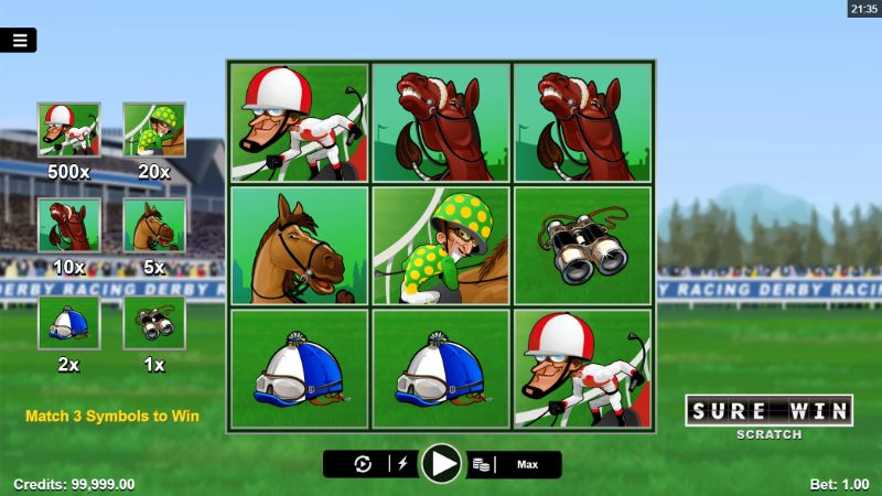 Trong game cào bài Sure Win Scratch, bảng kết quả sẽ có tổng cộng 9 ô. Nhiệm vụ của bạn là phải lật mở cả 9 ô này, nếu như có 3 biểu tượng giống nhau thì sẽ được ăn tiền thưởng tương ứng. Phần thưởng cao nhất trong game lên đến 500 lần mức cược. Lối chơi dễ hiểu, giao diện dễ nhìn, đây đúng là một game giải trí đỏ đen đích thực.