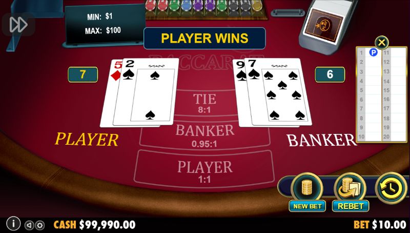 Baccarat là một game Casino rất được ưa chuộng và phổ biến rộng rãi ở các sòng bạc trên toàn thế giới. Người chơi và nhà cái sẽ được chia 2 lá bài và sau đó sẽ so giá trị của các lá bài với nhau. Có ba kết quả có thể xảy ra – người chơi thắng, nhà cái thắng hoặc hòa. Người chơi có thể đặt cược vào bất kỳ cửa nào trong ba kết quả này để ăn thưởng (hoặc mất tiền).