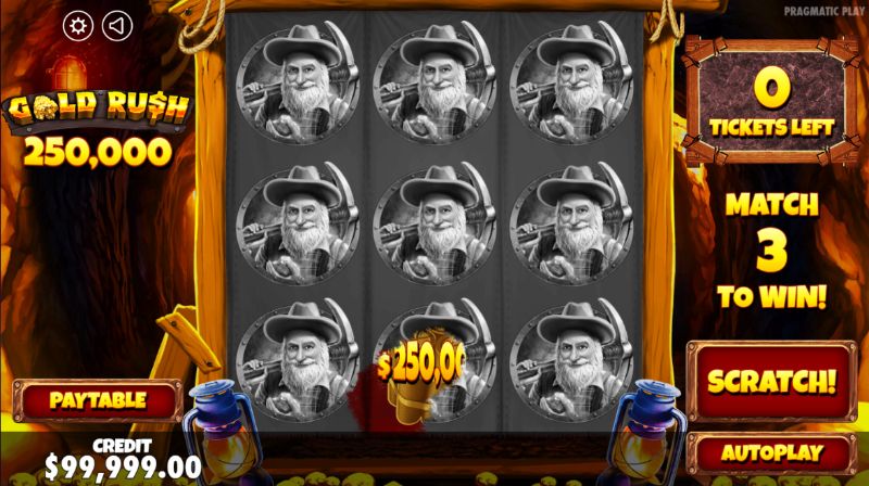 Hãy cùng chơi thử tựa game cào thường vừa mới ra mắt của Pragmatic Play có tên là Gold Rush Scratchcard. Tựa game này hứa hẹn sẽ mang lại cho người chơi những giây phút hồi hộp đặc biệt thú vị. Người chơi sẽ chiến thắng khi có 3 biểu tượng giống nhau xuất hiện và có cơ hội nhận được giải thưởng cao nhất là 250.000.