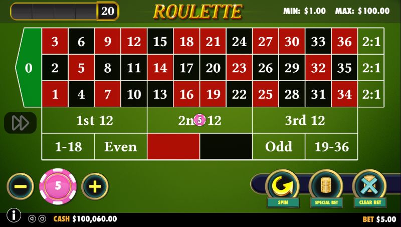 Game Casino online Roulette của Pragmatic Play là một game Roulette Châu Âu theo kiểu cổ điển. Trò chơi có 37 ô số từ 1 – 36 và ô số 0 màu xanh, mục tiêu khi chơi game Roulette là dự đoán bóng sẽ lăn vào số nào. Bạn có thể đặt cược vào bất kỳ con số cụ thể mong muốn hoặc đặt cược vào những tình huống có khả năng xảy ra. Ngoài ra, game Roulette của Pragmatic Play còn đi kèm với các mức cược phụ (side bet) để đáp ứng nhu cầu ăn thưởng theo dãy của người chơi. Đã ăn là phải ăn to luôn còn thua thì tay trắng…
