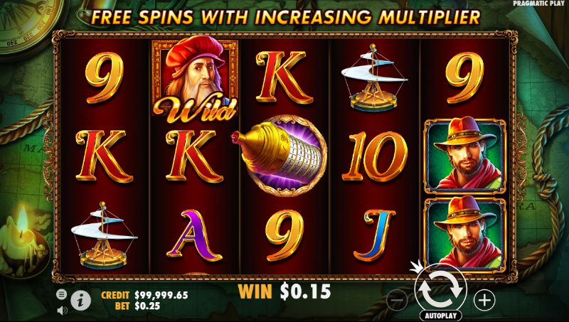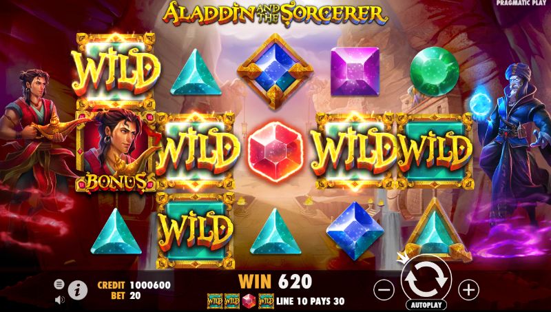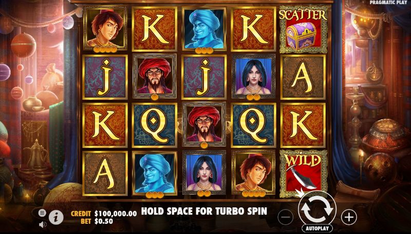 Cùng giúp đỡ anh chàng Aladdin ranh mãnh này giành được tiền thưởng trong game slot Aladdin’s Treasure này nhé. Bảng kết quả trong game có hình dạng 4×5 (4 dòng 5 cột) với tổng cộng 50 dòng thắng. Một khi tìm được chiếc đèn thần, bạn có thể triệu hồi Thần đèn và nhận được 10.500 điểm thưởng hoặc tiến đến Vòng quay miễn phí để tăng thêm cơ hội gỡ gạc với 50 lượt quay miễn phí, ăn dòng nào nhân đôi tiền dòng đó.