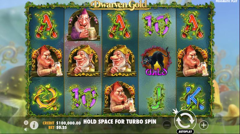 Những chú lùn may mắn sẽ đóng vai trò là biểu tượng WILD trong game slot Dwarven Gold Deluxe. Bảng kết quả trong game có hình dạng 3×5 (3 dòng 5 cột) với tổng 25 dòng trả thưởng tất cả. Những phần thưởng đầy hấp dẫn đang chờ đợi nếu bạn tìm được kho báu của những chú lùn. Trong Vòng quay miễn phí, trước khi bắt đầu mỗi vòng quay sẽ có hai biểu tượng WILD được thêm vào cột giúp gia tăng khả năng ăn thưởng.