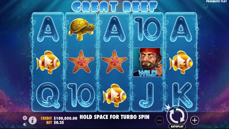 Những cư dân náo nhiệt của đại dương sâu thẳm đang phải cẩn thận với loài cá mập trắng lớn đe dọa tới sinh mạng của họ. Cùng gặp gỡ những người dân đó trong tựa game slot Great Reef và họ sẽ dạy bạn cách kiếm tiền. Bảng kết quả trong game có hình dạng 3×5 (3 dòng 5 cột) với tổng cộng 25 dòng thắng. Nếu ăn được 3 biểu tượng Scatter trở lên là có cơ hội được thưởng 33 lượt quay miễn phí cực đã.