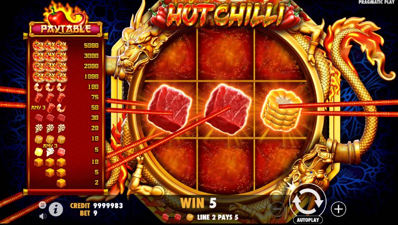 Nếu bạn là người thích ăn cay thì nên chơi game slot Chilli Heat để tìm được sự đồng cảm. Bảng kết quả trong game có hình dạng 3×5 (3 dòng 5 cột) với tổng cộng 25 dòng thắng tất cả. Biểu tượng ông mặt trời nóng bỏng xuất hiện ở cột 2, 3 và 4 sẽ mang đến cho người chơi 8 lượt quay miễn phí. Nếu trong lượt quay miễn phí mà lại được 3 biểu tượng ông mặt trời nữa thì cộng tiếp thêm 8 lượt quay, không hề giới hạn. Có 3 mốc nổ hũ trong game theo thứ tự từ nhỏ đến lớn là: Mini / Major / Grand, cược càng lớn ăn càng to.