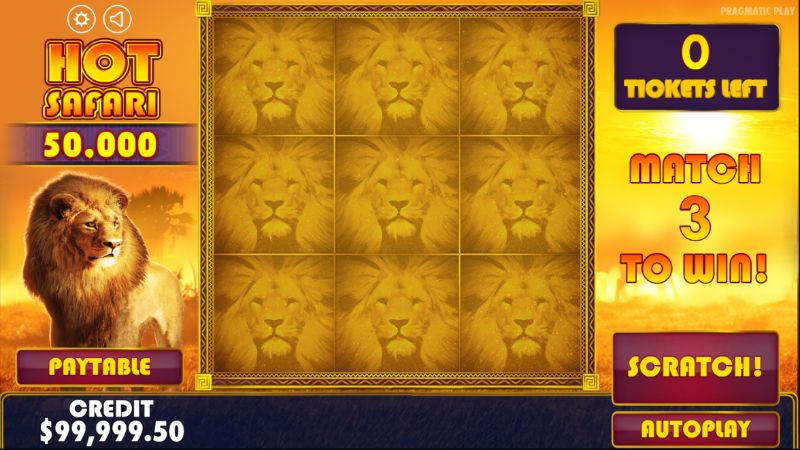 Trong game cào thưởng Hot Safari Scratchcard, người chơi sẽ có cơ hội chiến thắng khi có 3 biểu tượng giống nhau xuất hiện và có cơ hội nhận được giải thưởng cao nhất là 50.000.