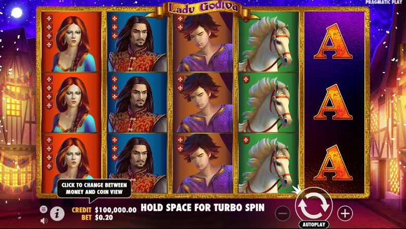 Người chơi sẽ được sống lại những thời khắc trong câu chuyện Lady Godiva và giành giải thưởng hấp dẫn. Bảng kết quả trong game có hình dạng 3×5 (3 dòng 5 cột) với tổng cộng 20 dòng thắng tất cả. Nếu bảng kết quả trả về có trên 3 biểu tượng Scatter thì bạn sẽ được thưởng tối đa 30 lượt quay miễn phí cực đã.