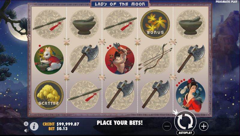 Khám phá vẻ đẹp của những câu chuyện dân gian Trung Quốc thông qua tựa game slot Lady of the Moon. Nếu dịch sang tiếng Việt thì Lady of the Moon tức là chị Hằng Nga trên cung trăng đó. Bảng kết quả trong game có hình dạng 3×5 (3 dòng 5 cột) với tổng cộng 13 dòng thắng tất cả.