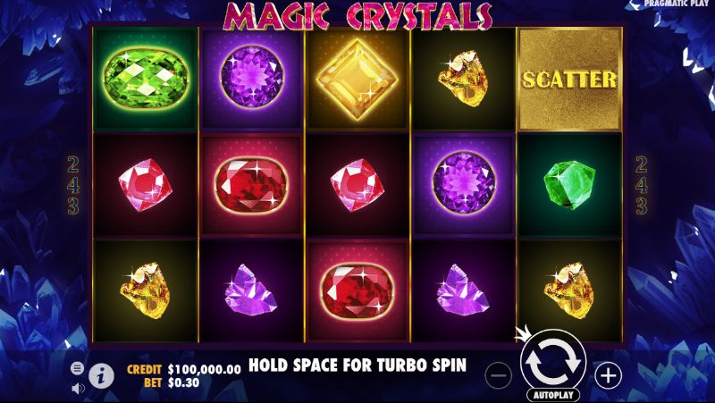 Trong game slot Magic Crystals, người chơi sẽ được tham gia cuộc hành trình bước vào thế giới của những viên đá quý lấp lánh. Bảng kết quả trong game có hình dạng 3×5 (3 dòng 5 cột) với tổng cộng 243 dòng thắng. Tất cả những dòng thắng mà có chứa biểu tượng WILD sẽ được nhân đôi tiền thưởng, đồng thời trong Vòng quay miễn phí bạn có thể sở hữu tối đa 25 vòng quay miễn phí và được thưởng 3 lần tiền ăn được.