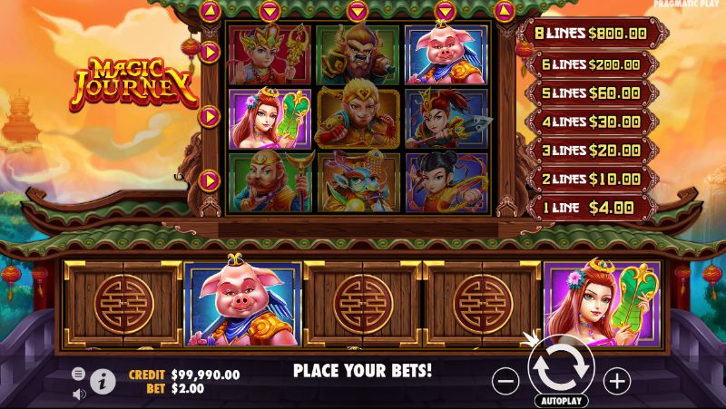 Tây Du Ký thì đã quá quen thuộc với bất kỳ ai trong số chúng ta rồi. Trong game slot Journey to the West, người chơi sẽ cùng với Tôn Ngộ Không, Sa Tăng, Trư Bát Giới và Đường Tăng đi Tây Thiên thỉnh kinh và tiện thể đi tìm tiền tài vàng bạc luôn. Bảng kết quả trong game có hình dạng 3×5 (3 dòng 5 cột) với 25 dòng trả thưởng. 3 biểu tượng Scatter xuất hiện còn kích hoạt 5 lượt quay miễn phí.
