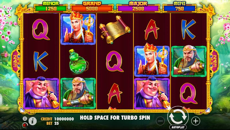 Cùng trải nghiệm lịch sử rực rỡ của đất nước Trung Hoa thông qua tựa game slot 3 Kingdoms hấp dẫn này. Bảng kết quả trong game có hình dạng 3×5 (3 dòng 5 cột) với tổng cộng 25 dòng thắng/ Các viên tướng Tào Tháo, Lưu Bị và Tôn Quyền đã đưa toàn bộ quân lính của họ đổ bộ lên bảng kết quả, Khi cả ba vị tướng chạm trán nhau, người chơi sẽ nhận được điểm thưởng và dần dần tiến đến mốc nhận giải thưởng jackpot (nổ hũ) lên đến 100 lần tiền cược.