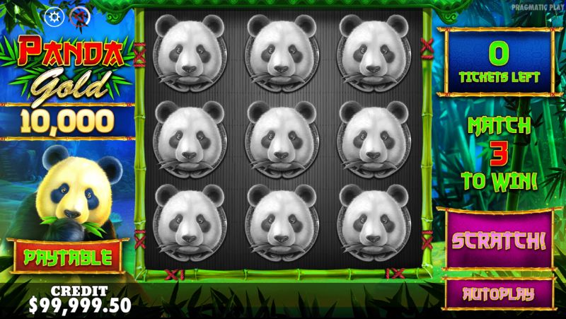 Trong game Panda Gold Scratchcard, bạn sẽ sẽ chiến thắng khi có 3 biểu tượng giống nhau xuất hiện và có cơ hội nhận được giải thưởng cao nhất là 10.000.