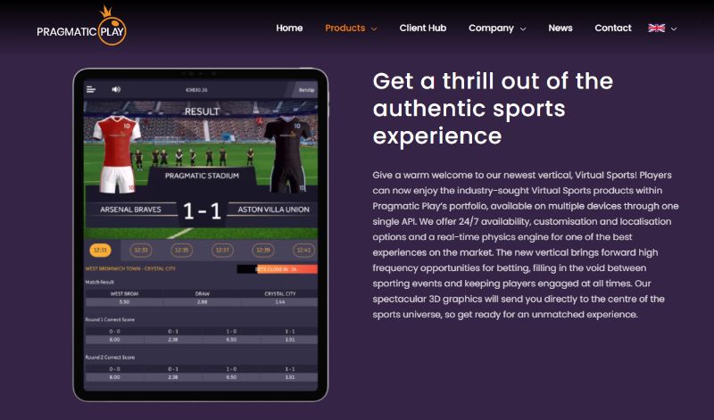 Với Virtual Sports của nhà phát hành Pragmatic Play, đảm bảo người chơi sẽ có những giây phút chơi cá cược căng thẳng kịch tính. Người chơi có thể bet cược mọi lúc mọi nơi 24/7, bên cạnh đó là các lựa chọn tùy chỉnh như lựa chọn múi giờ để theo dõi lịch thi đấu. Vô vàn các giải đấu khác nhau cho phép người chơi đặt cược liên tục với tần suất cao, lấp đầy khoảng trống giữa các sự kiện thể thao và giữ cho người chơi luôn dành thời gian để theo dõi kết quả. Hơn thế nữa đồ họa 3D đẹp mắt của Pragmatic Play cũng sẽ đưa bạn thăng hoa cùng cảm xúc với thể thao.