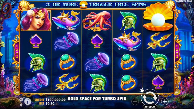 Những kho báu của vương quốc đang bị nhấn chìm dưới đáy đại dương Atlantis, nếu muốn giàu nhanh thì chỉ có lặn xuống tìm. Bảng kết quả trong game có hình dạng 4×5 (4 dòng 5 cột) với tổng cộng 1024 dòng thắng. Hãy săn tìm ít nhất 3 biểu tượng hình ngọc trai để kích hoạt Vòng quay miễn phí. Nếu bạn có thể tìm thấy viên ngọc trai đen, phần thưởng cho bạn sẽ là tính năng Siêu vòng quay miễn phí với phần thưởng cực đã.