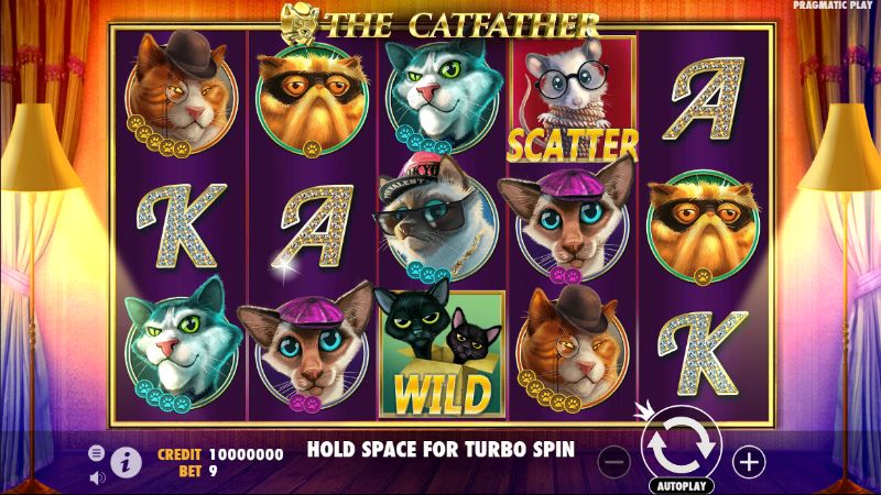 Sự trở lại của băng nhóm mafia The Catfather sẽ đánh dấu một mối nguy mới cho nền kinh tế. Bảng kết quả trong game có hình dạng 3×5 (3 dòng 5 cột) với tổng cộng 30 dòng thưởng tất cả. Biểu tượng WILD hình mèo con có thể xuất hiện ngẫu nhiên tại các cột và chiếm diện tích của nguyên cột ấy luôn. The Catfather cùng đám thuộc hạ sẽ trả tiền cho bạn sau mỗi vòng quay ăn thưởng.