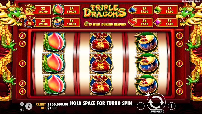 Hãy cùng bay cao bay xa cùng với 8 chú rồng trong game slot 8 Dragons và giành giải thưởng thật to. Bảng kết quả trong game có hình dạng 3×5 (3 dòng 5 cột) với tổng cộng 20 dòng thưởng tất cả. Biểu tượng WILD sẽ chỉ xuất hiện ở cột 2, 3 và 4.