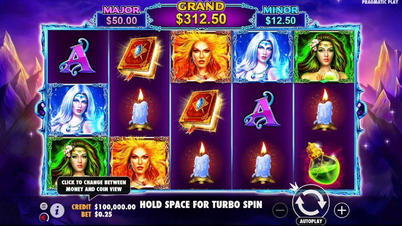 Cùng giải phóng sức mạnh của các nguyên tố trong game slot Wild Spells để kích hoạt phần thưởng cực khủng. Bảng kết quả trong game có hình dạng 3×5 (3 dòng 5 cột) với tổng cộng 25 dòng thắng tất cả. Nếu 3 biểu tượng phù thủy Lửa, Nước và Tự nhiên được xếp lần lượt từ trái qua phải, người chơi sẽ trúng cơ hội ăn nổ hũ tiền tươi. Ngoài ra 3 biểu tượng Scatter còn cho bạn tới 20 lượt quay miễn phí.