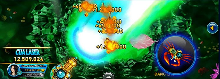 Khi bạn may mắn hạ được Cua Laser thì sau 3 giây súng Laser sẽ thuộc về bạn. Bạn sẽ có 30 giây tiếp theo để lựa chọn hướng bắn thu thập được nhiều cá nhất có thể. Quá 30 giây hệ thống sẽ tự động bắn.